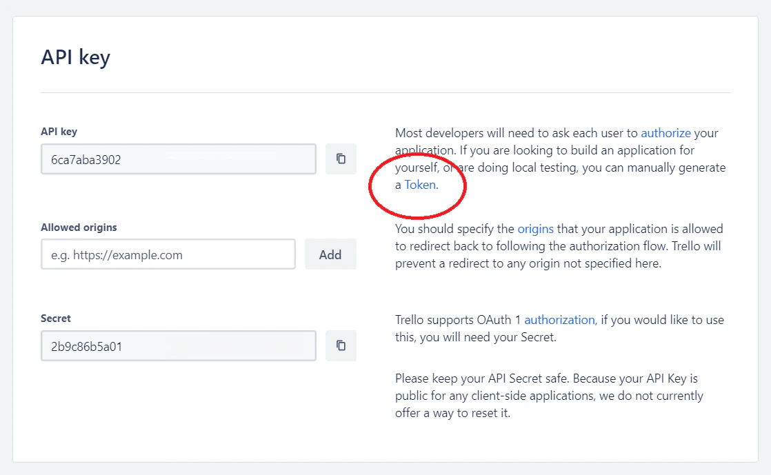 - Token: The token for the Trello Power-Up